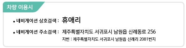 주소 : 제주특별자치도 서귀포시 남원읍 신례동로 256